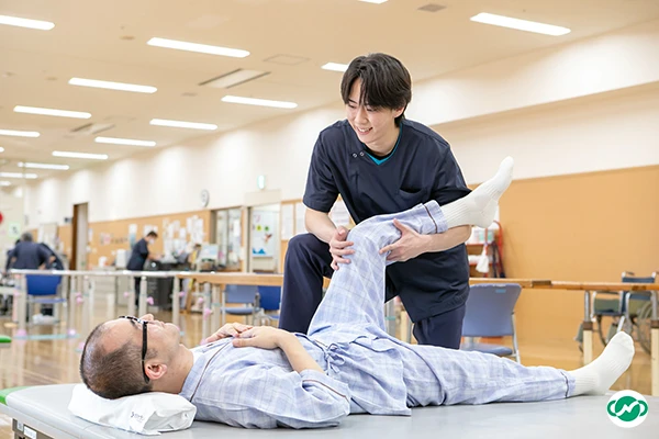 さまざまな種類の運動を通じて、患者さんの基本的動作能力の回復をはかる運動療法と、電気や温熱などの外部エネルギーを加えることで痛みの軽減をはかる物理療法によっておもに構成された治療法です。
