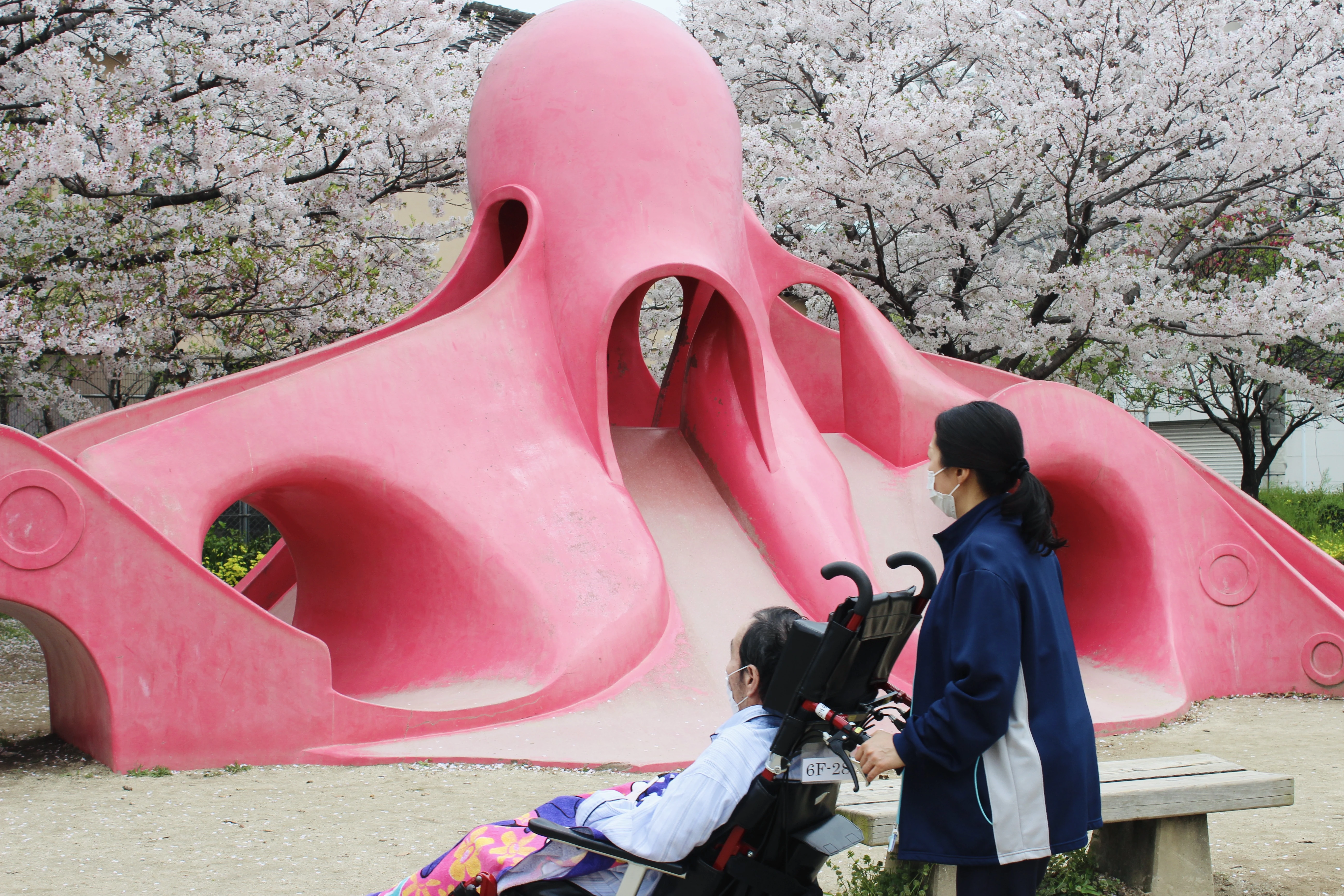 春のやわらかな陽気の中、入院患者さんと職員でお花見に出かけました。