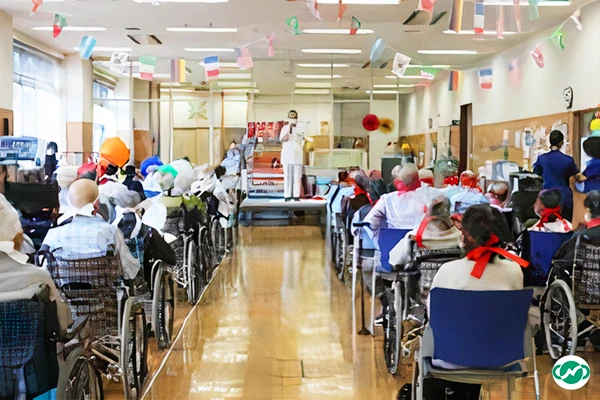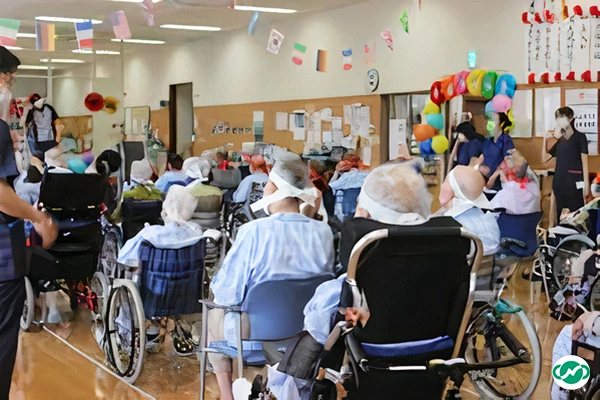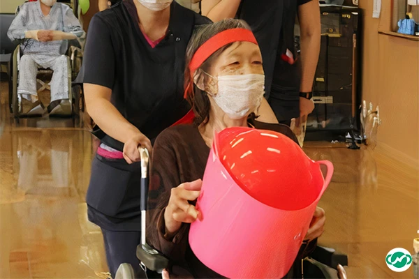 令和7年11月5日(水)午後1時からリハビリ訓練室にて、恒例の運動会が盛大に開催されました。入院患者さん40名が紅白に分かれ、玉入れや大風船送り、ナイキャッチ、障害物競走などの競技を行いました。競技中は、チームメイトやスタッフがお互いを励まし合い、温かい声援が飛び交いました。普段なかなか話す機会のない患者さん同士も、この日は『頑張ろう!』と声を掛け合い、自然と笑顔の花が咲きました。体だけではなく、心も温まる素敵な交流の場となりました。この運動会が参加された患者さんの心身のリフレッシュに繋がったことはもちろん、今後のリハビリへの新たな意欲、そして入院生活の大きな喜びとなることを心から願っています。私たち病院スタッフも、患者さんの笑顔から多くの元気をもらいました。